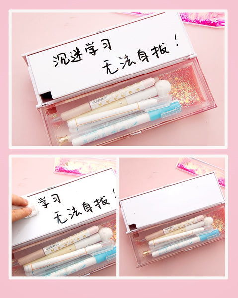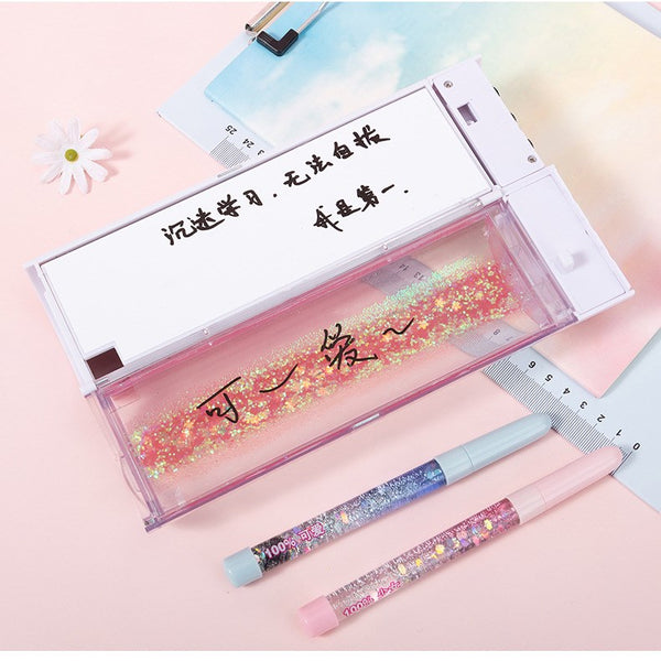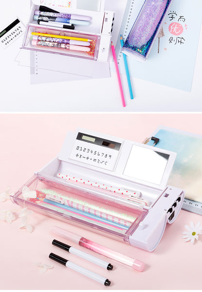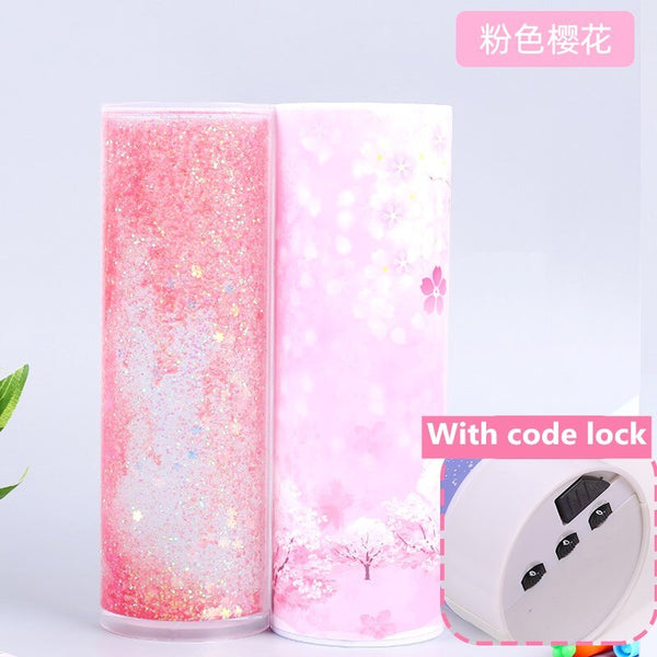 Multifunctional creative pencil case password lock quicksand stationery box large capacity office stationery school supplies
