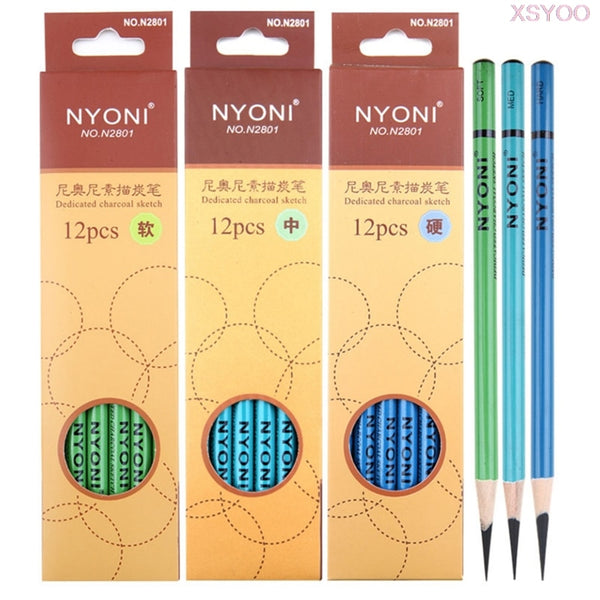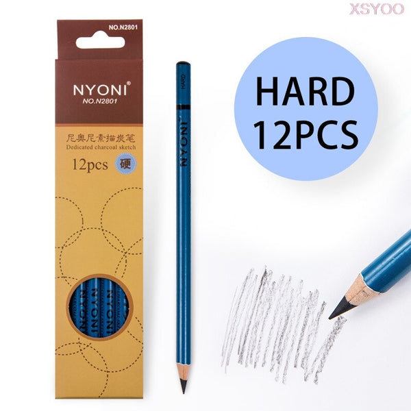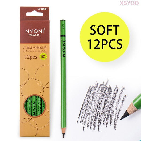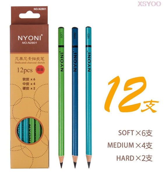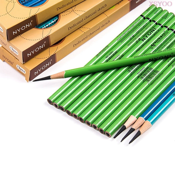 NYONI 10/12Pcs 14B Pencil Set Dedicate Charcoal Pencil Soft Medium Hard Painting Pencils Sketch Pencil Art Supplies Staionery
