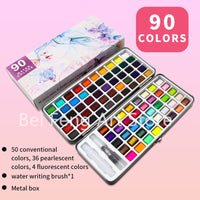 Professional 50/72/90/100 Colors Solid Watercolor Paints Set Basic Neone Glitter Watercolor Paint for Drawing Art Paint Supplies