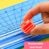 ●Note: Pull the transparent ruler out to take out the cutter head. Please be careful when changing the sharp blade.