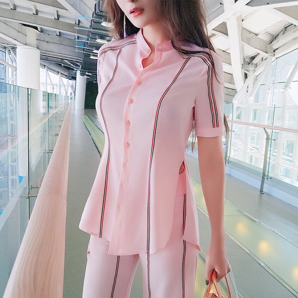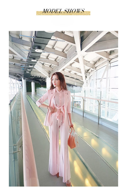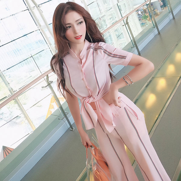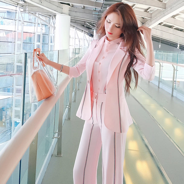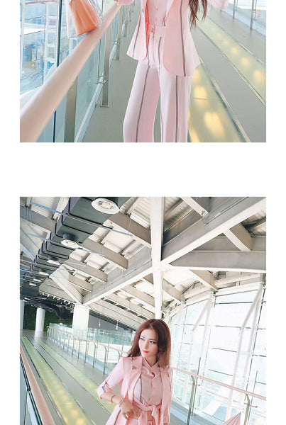 AOOKDRESS summer new striped women's trousers suit, short pants, slimming, bottoming shirt, small suit jacket, three-piece female
