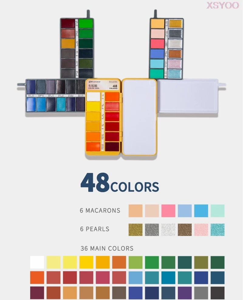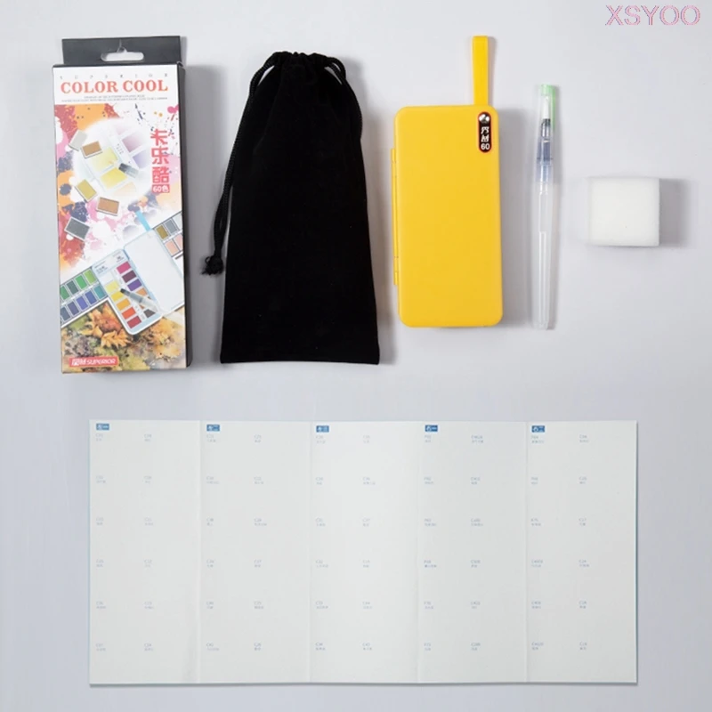 Superior 36/48/60Colors Watercolor Paint Set Foldable Pigment Paint with Water Brush Pen Travel Water Color Artists Art Supplies