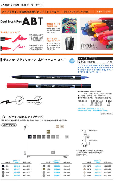 TOMBOW AB-T Japan 96 Colors Art Brush Pen Double Heads Profession Water Marker Painting Kawaii Stationery