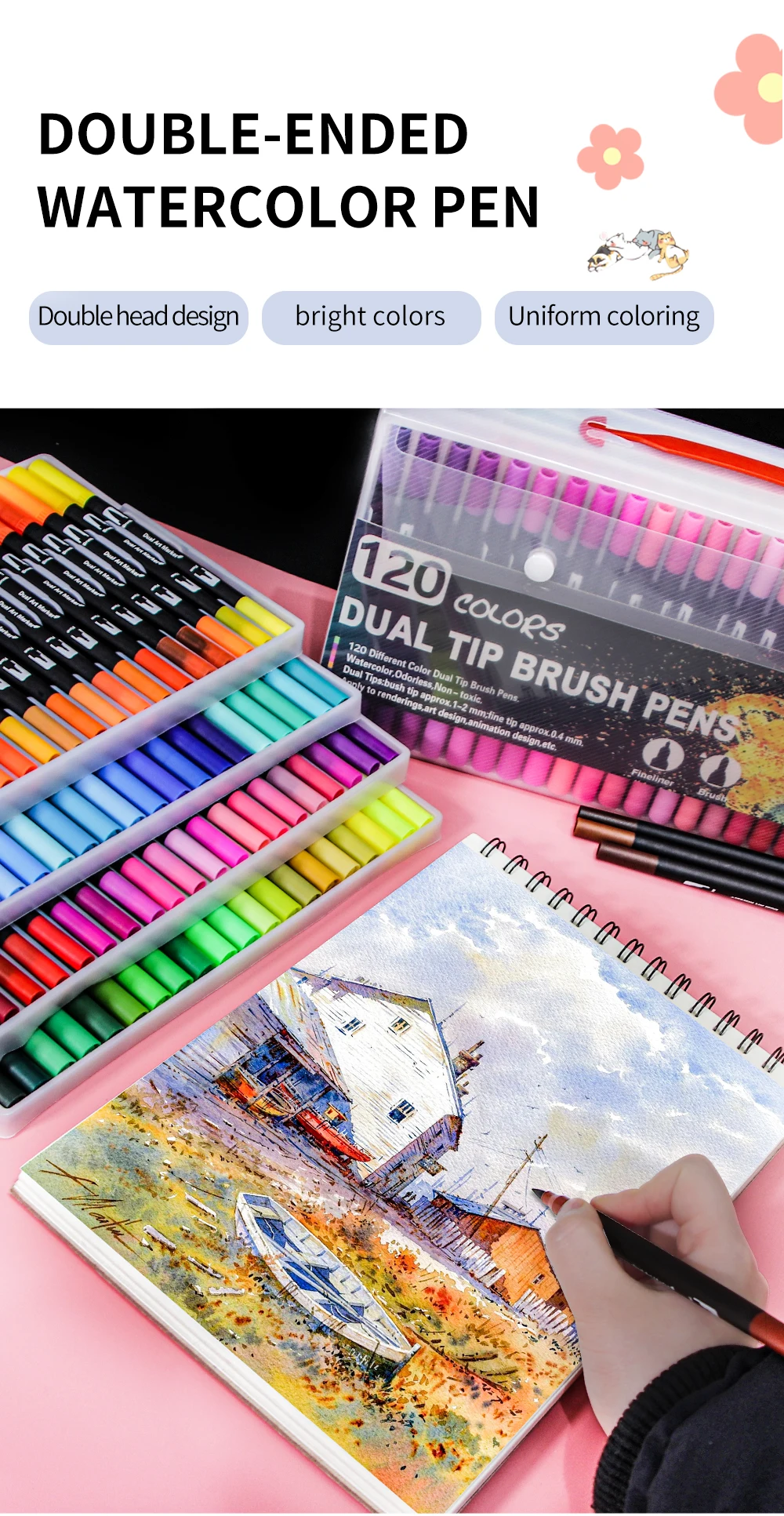 Washable Markers 24/36/48/72/60/100/120Colors Double Tip Marker Pens Fine Brush For Drawing Painting Calligraphy Art Supplies